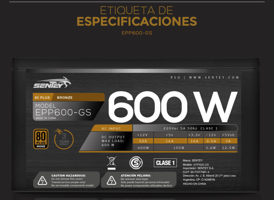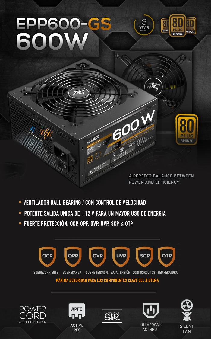 FUENTE EPP600-GS 80 PLUS BRONZE