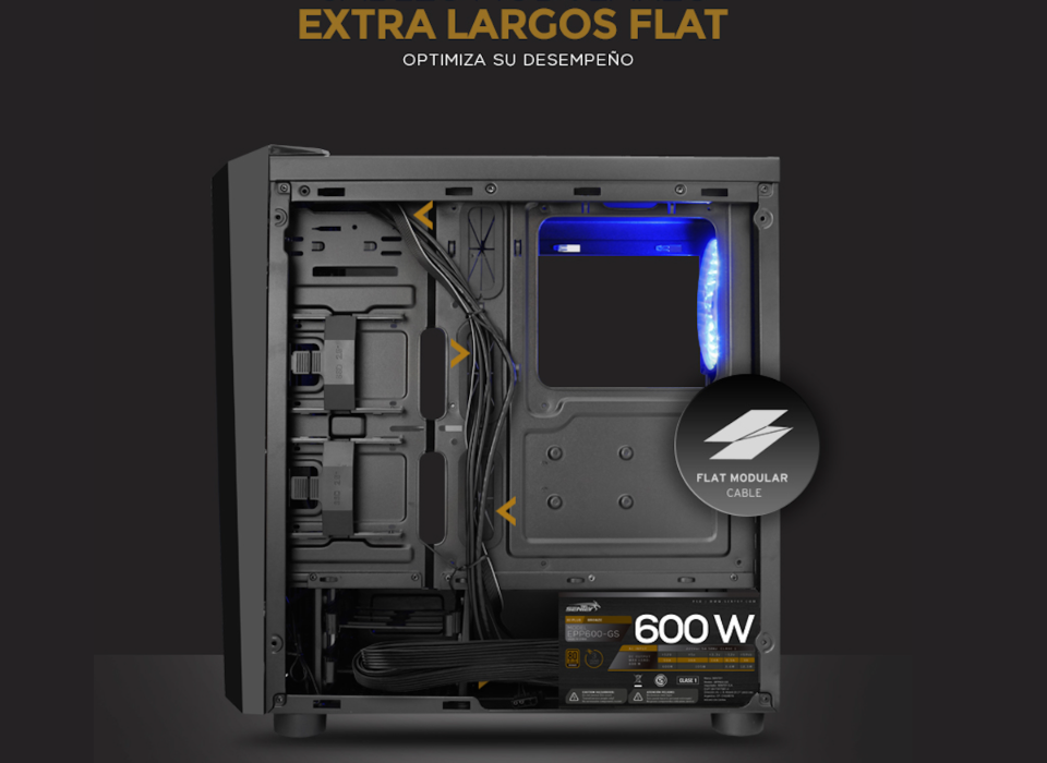 Ideal para gabinetes con ventanas transparentes o setups personalizados. El interior luce más ordenado y atractivo.