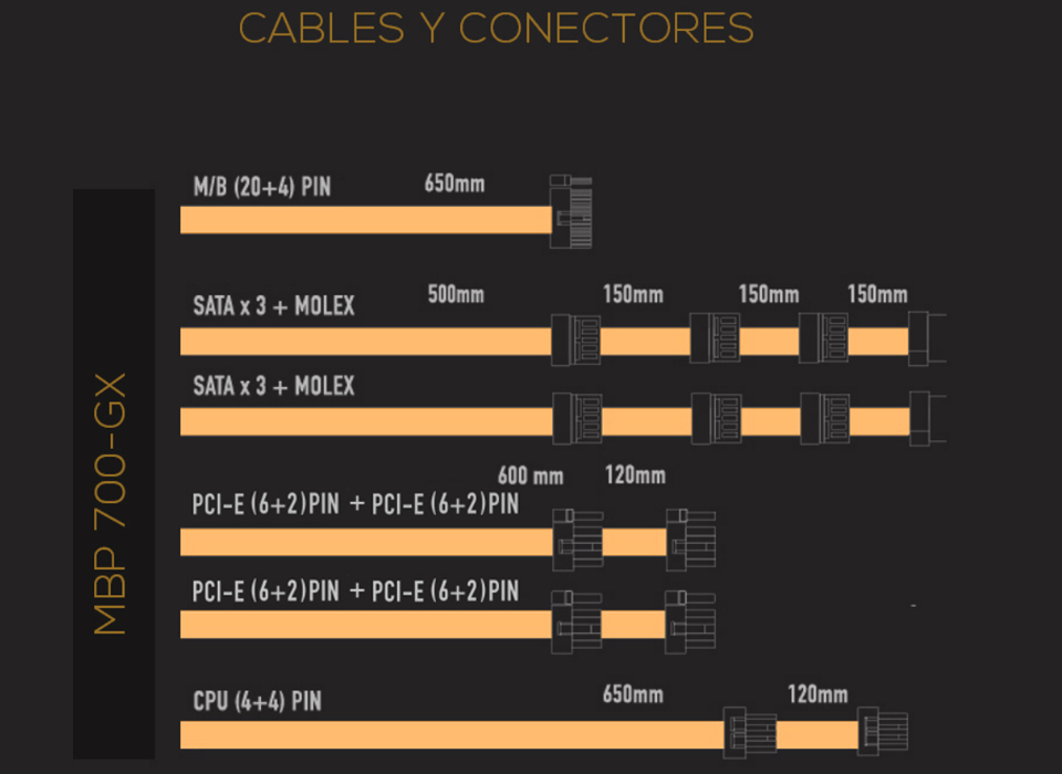 | PCI-E 6+2pines | 4 Conectores 2 Cables |