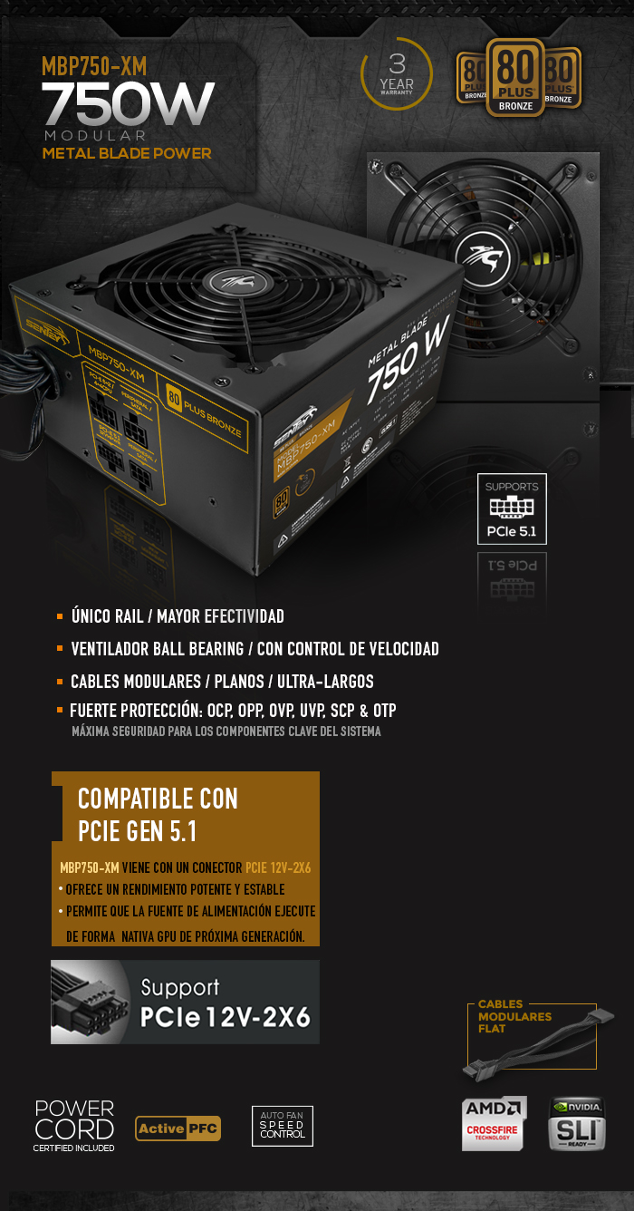 750 WATTS - 80 PLUS BRONCE - CABLES SEMI MODULARES / ATX 3.1