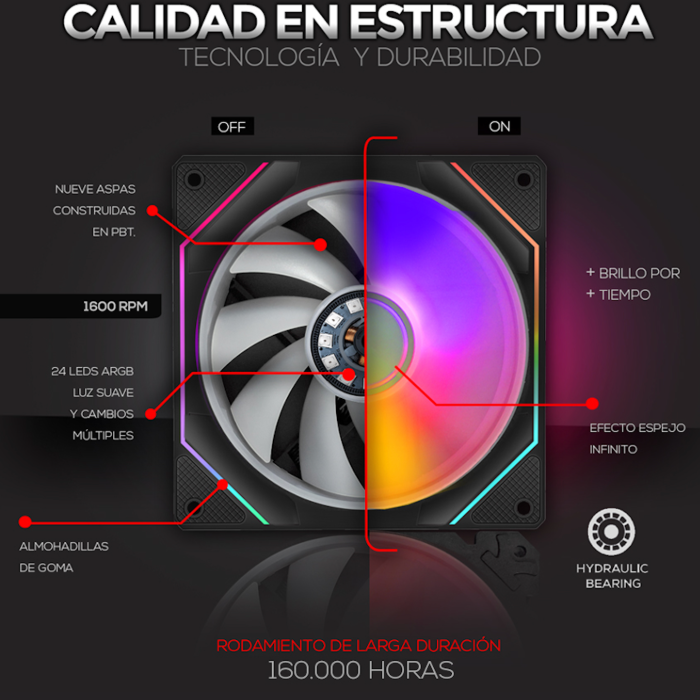 🌈 Los ventiladores ARGB permiten iluminación dinámica y sincronizada con el resto del sistema (placa madre, RAM, GPU, etc.).