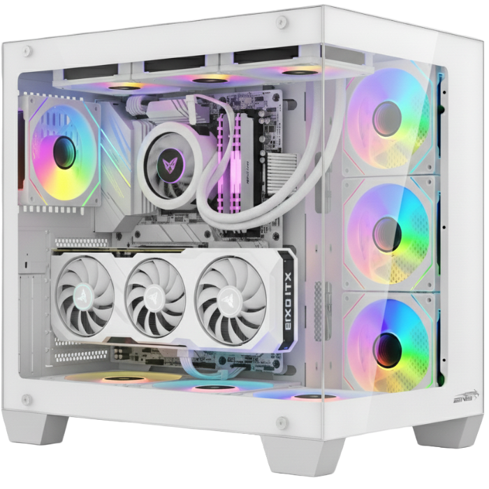 Da una apariencia futurista y tridimensional única, perfecta para PCs con paneles de vidrio o builds estilo gamer o showcase.