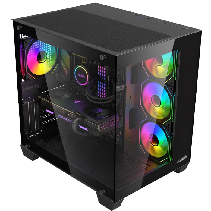 VIDRIO LATERAL Y FRONTAL TEMPLADOS CON 4 FANES ARGB DE 120 MM INCLUIDOS PWM