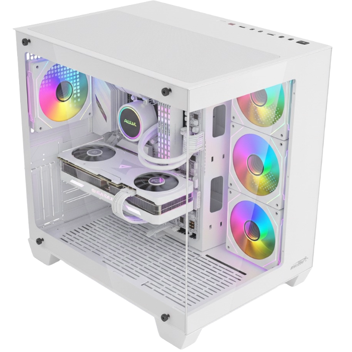 Da una apariencia futurista y tridimensional única, perfecta para PCs con paneles de vidrio o builds estilo gamer o showcase.