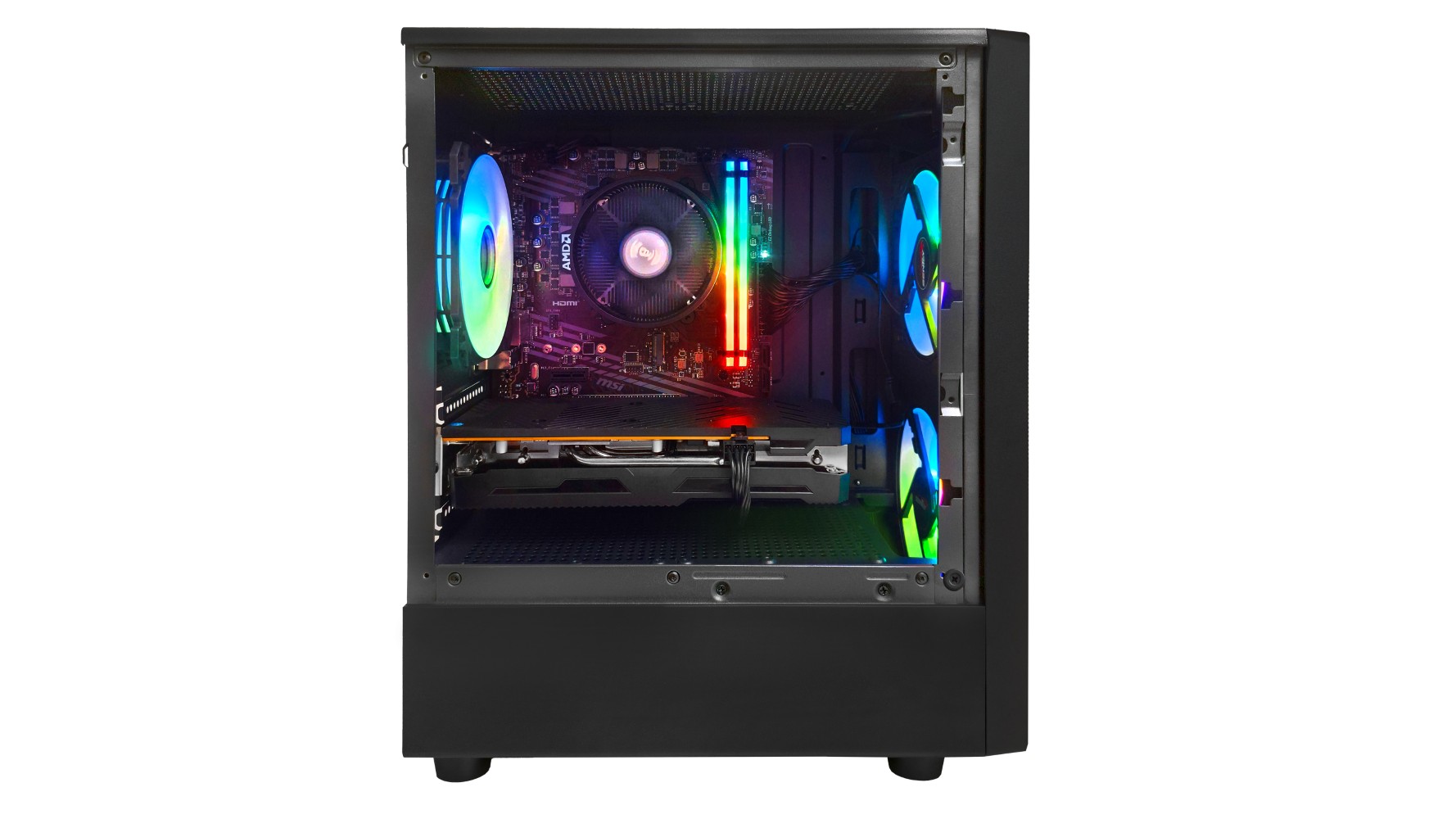 ✅ Resalta los componentes gamer visibles (GPU, RAM, refrigeración, etc.).