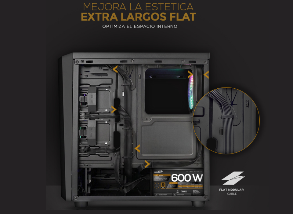 Los exclusivos cable Modulares FLAT permiten de forma excepcional realizar la ubicación de los cables en el interior de gabinete sin comprometer el flujo aire permanente.