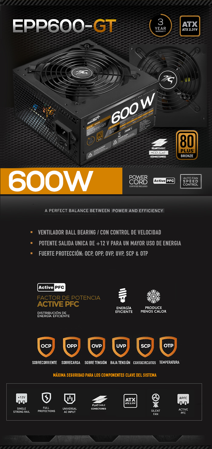 FUENTE EPP500-GT 80 PLUS BRONZE