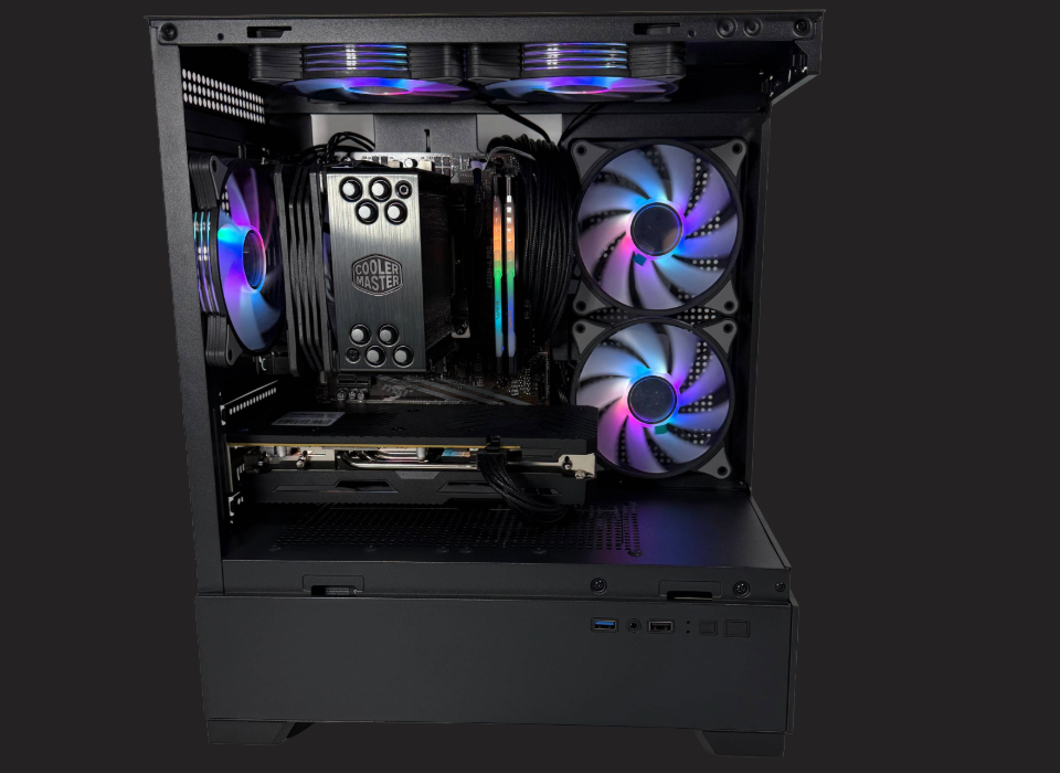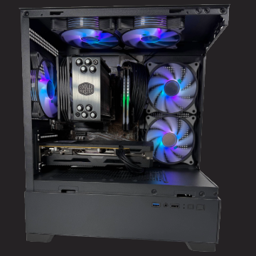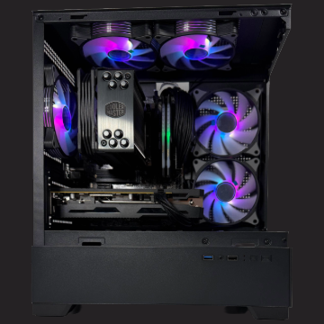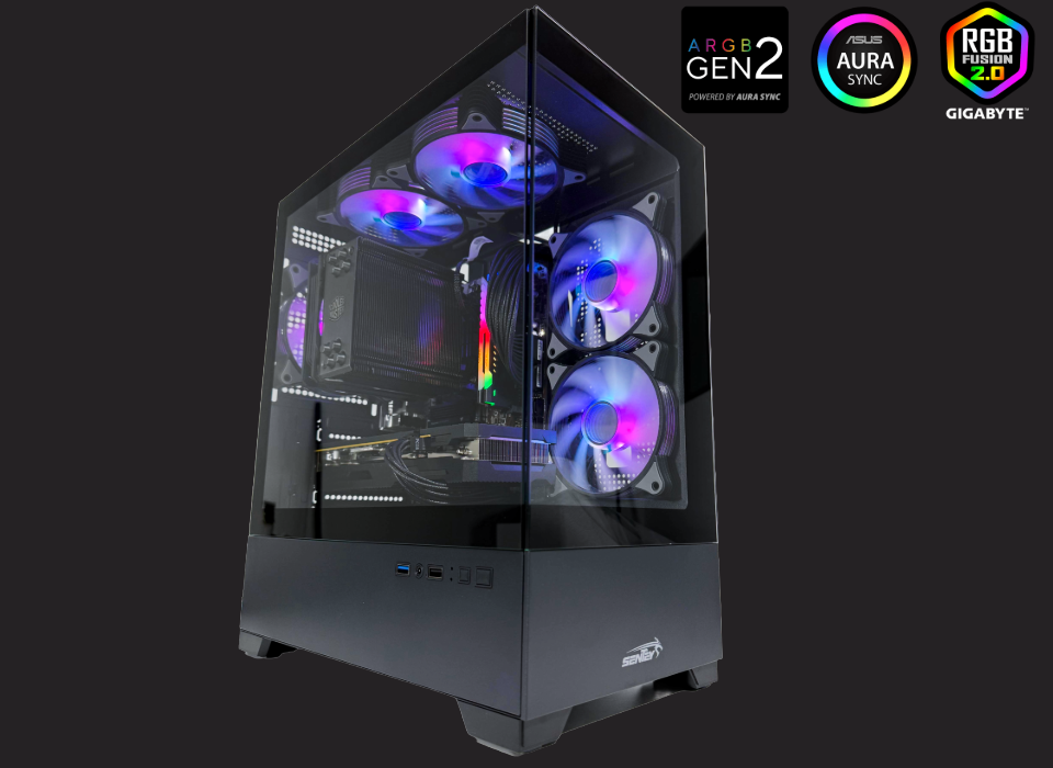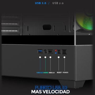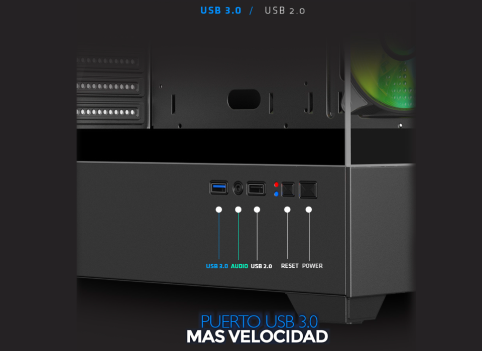 Resalta los componentes gamer (placa de video, RAM con RGB, disipador, etc.), logrando un look más atractivo.