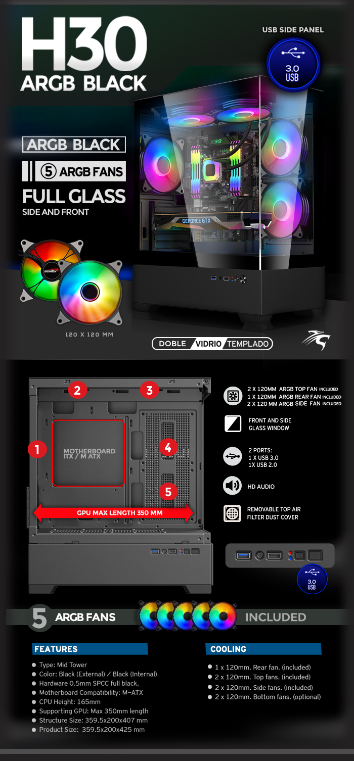 | Cooler lateral | SI 2 de 120mm ARGB Incluidos |