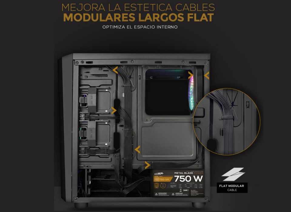 La serie Metal Blade Power cuenta con un único Raíl rubusto y dedicado de +12 V permite con una sencilla configuración disponer de toda la corriente disponible en esa línea, ofreciendo una mayor compatibilidad con los componentes y las tarjetas gráficas de ultima generación.