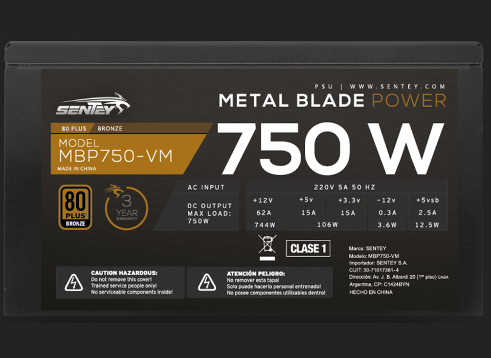 La nueva serie Metal Blade Power con una eficiencia de hasta un 87%, cumple con la Certificacion 80 PLUS Bronze debido a la alta eficiencia de la serie MBP, puede reducir los costos de consumo eléctrico y brindar al mismo tiempo un alto rendimiento.