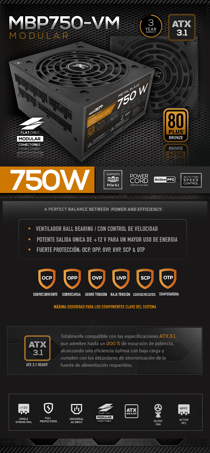 FUENTE 80 PLUS MBP750-VM