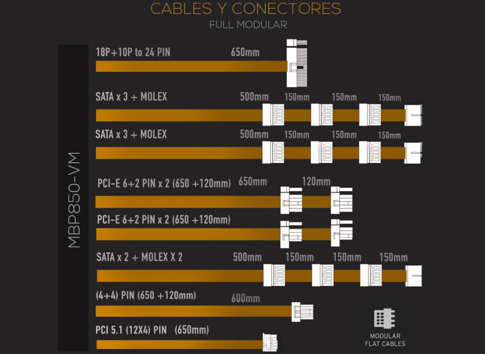 | PCI-E 6+2pines | 4 Conectores 2 Cables |