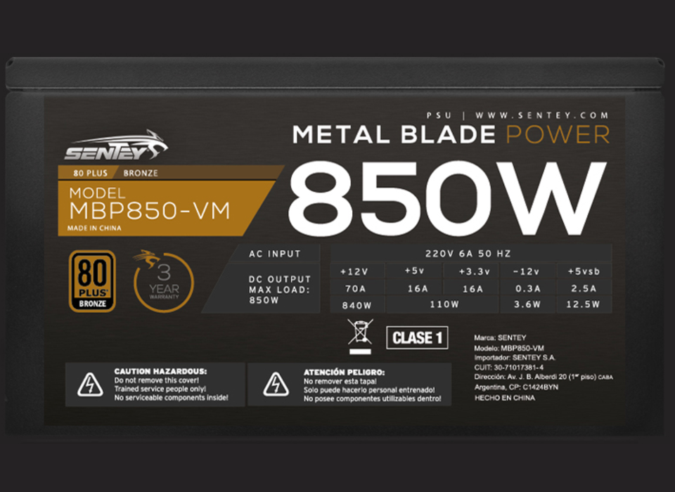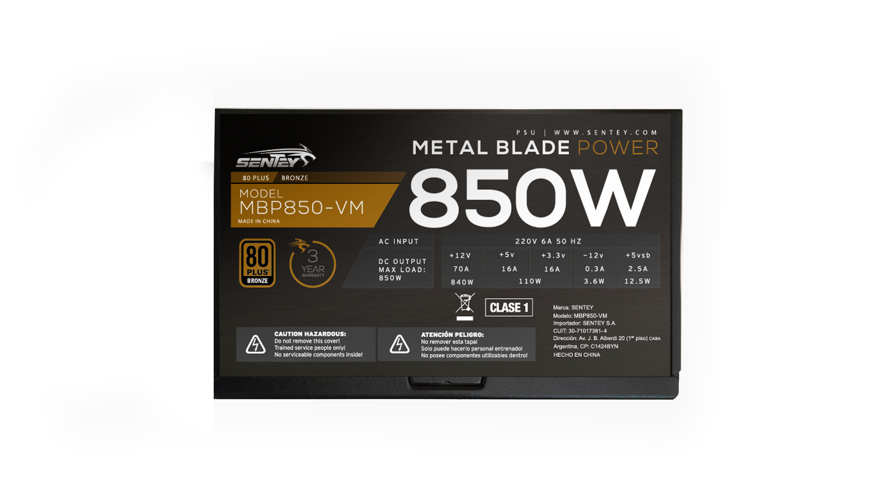 La nueva serie Metal Blade Power con una eficiencia de hasta un 87%, cumple con la Certificacion 80 PLUS Bronze debido a la alta eficiencia de la serie MBP, puede reducir los costos de consumo eléctrico y brindar al mismo tiempo un alto rendimiento.