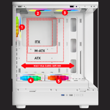 ✅ INCLUYE 5 FAN COOLERS ARGB CON EFECTOS INTERCAMBIABLES