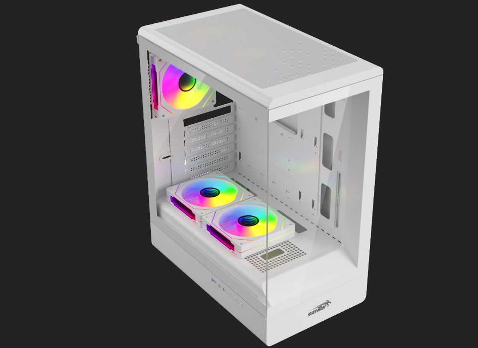 VIDRIO LATERAL Y FRONTAL TEMPLADOS CON 5 FANES ARGB DE 120 MM INCLUIDOS