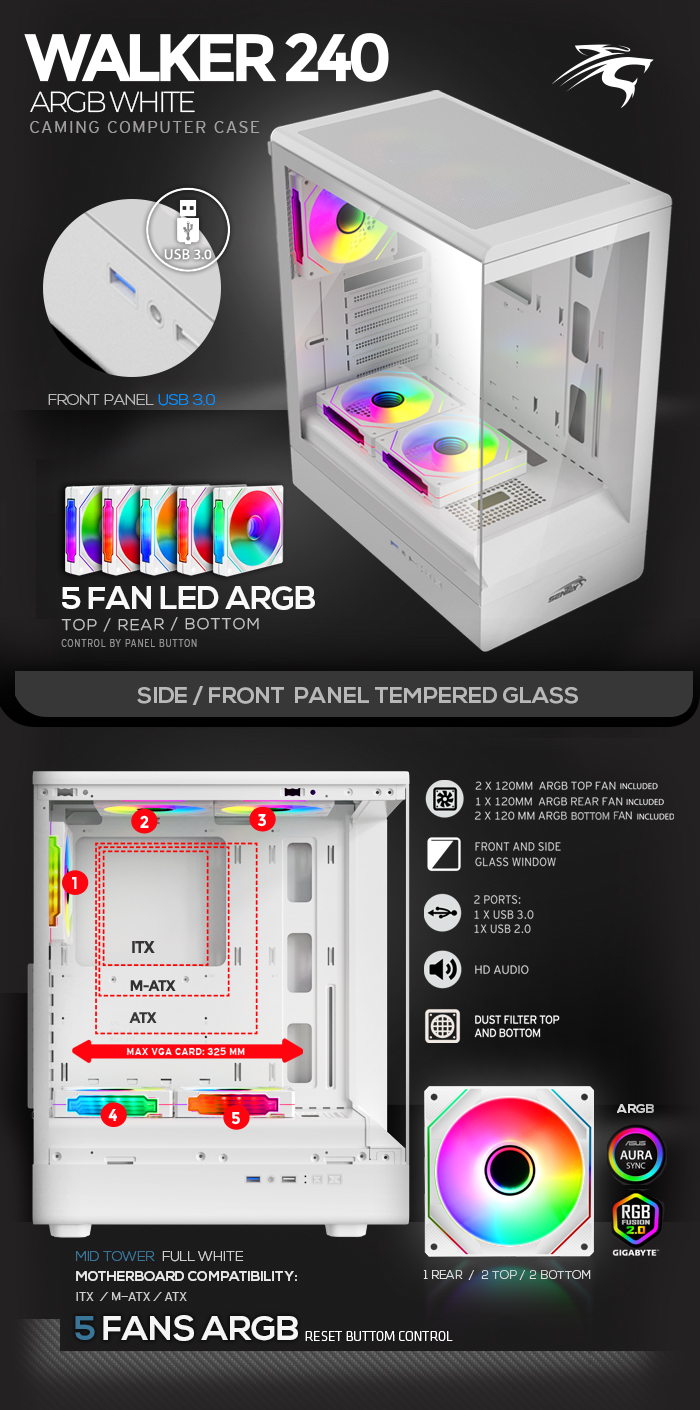 Nombre | Walker 240 ARGB 5 Fanes White |