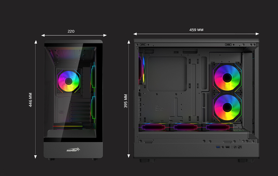 ✅ VIDRIO LATERAL Y FRONTAL TEMPLADOS CON 5 FANES ARGB DE 120 MM INCLUIDOS