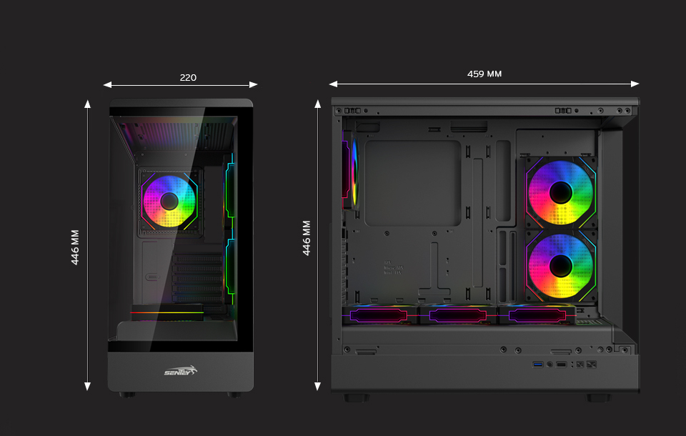 ✅ VIDRIO LATERAL Y FRONTAL TEMPLADOS CON 5 FANES ARGB DE 120 MM INCLUIDOS